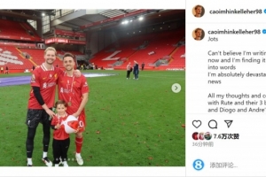 凯莱赫社媒晒出与若塔的合照,并写道:“真的不敢相信我现在正在写这些话,我很难用言语表达我的感受。这个消息让我彻底心碎。我所有的思念和慰问都送给鲁特以及他们三个可爱的孩子,还有迪奥戈和安德烈的家人。